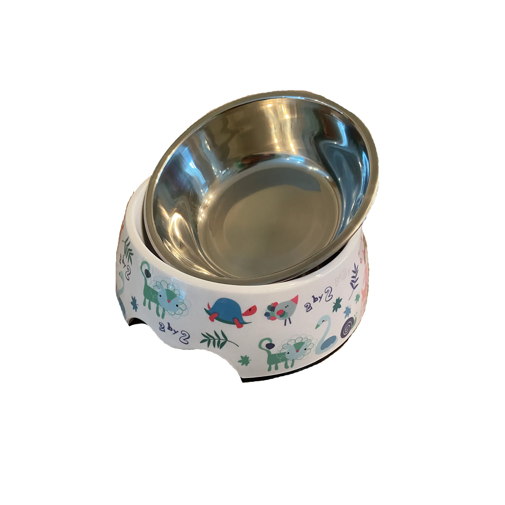 Orange; circle of sections held together - one of the many joys our pooch delivers. Add some zest to their life and yours with this Orange small-sized dog bowl. Our dog bowls are made of easy-to-clean, stainless steel with finger holes on each side to allow for easy lifting when you need to refill. Cutie Ties 2-piece dog bowls make for an easy interchangeable design to match decor or your pet's mood at a moment's notice. The outer melamine bowl measures 5.5" wide with the removable stainless-steel bowl measuring 4.5" wide. portion of all purchases will go to the magic bullet fund. Free shipping on orders over $10 (contiguous United States).