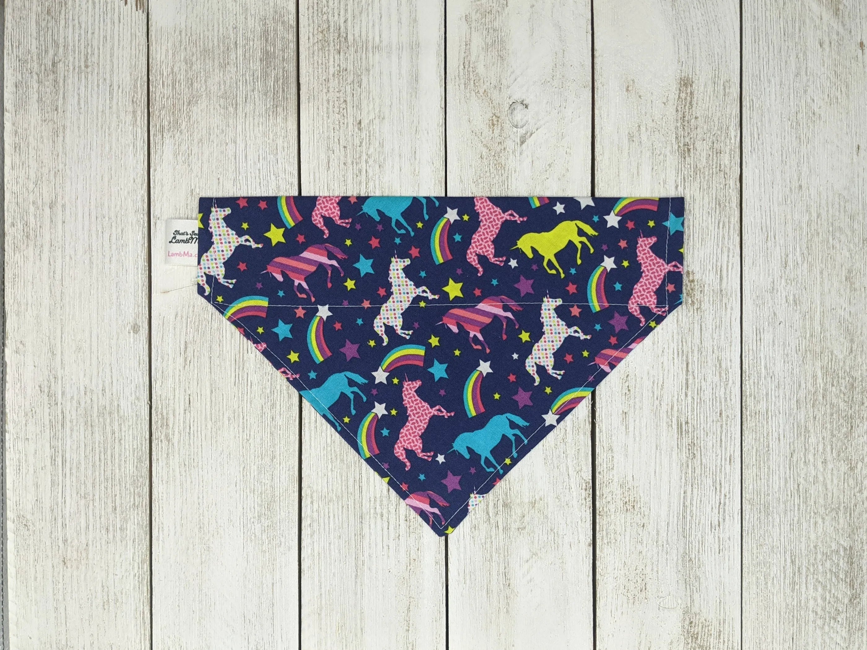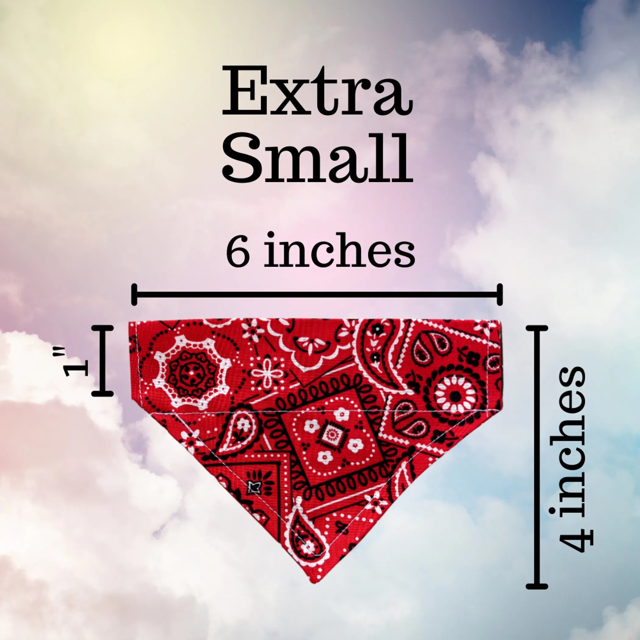 LambMa bandanas slide over a standard dog collar with ease for a safe, secure, and fashionable way for your pup to wear a bandana! Every bandana is handmade by LambMa here in the USA and are available in various sizes and designs. In order to get accurate sizing, measure length of collar and round down to closest sized bandana. Bandanas are handmade therefore sizing may vary to the slightest degree
