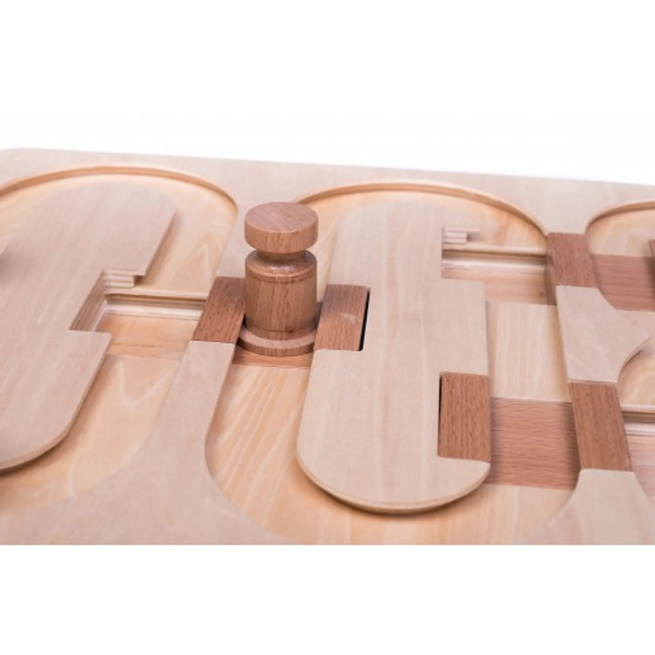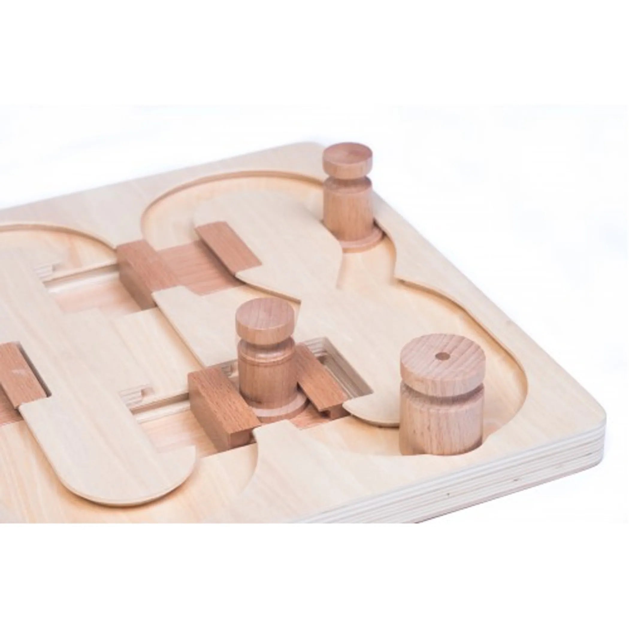 Length: 15.40 Width: 11.80 Height: 0.90 Agent 008 This is the most challenging game in our offer. Due to its difficulty we recommend it for use by most advanced players with lots of experience in the field of solving intelligent puzzles. The aim is to move the hat under which the treat is hidden to the position in which it can be knocked over and discovered. If your dog masters this game you can brag that he is a real genius! Difficulty of this game comes from the "bridges" that connect the tracks forming the number "008" on the base. The dog has to learn how to move the "bridges" in order to advance to the section where the "hat" can be released from the track. The parent can regulate this challenge by positioning the "hat" close to the unlocking position and then gradually moving it away from that point as the dog learns the trick. This game is recommended to train pet's mental activity and help their concentration and curiosity. If your dog masters this puzzle you can brag that he is a real genius ready to join special forces in service of Her Majesty the Queen! According to dog's behaviorists 10 minutes of mental stimulation with employment of interactive game equivalents to 1 hour of physical exercise. This is especially important for the dogs living in large cities where long walks are difficult and impossible , senior dogs with ailments that do not allow them for prolong outings and those living in cold climates where going outside can put animal's health at risk. Here's how it works: 1. Let the dog watch as you set up the game in order to stimulate its curiosity. Hide his favorite treats beneath the hats. Then move the pieces from the opening on the left-hand side into the appropriate tracks 2. Encourage your dog verbally to start searching. Be patient and show him how the game works. For instance, you could pint out to where a treat is waiting to be discovered. 3. Initially use only a few "hats" and set the game at an easier level. Increase the level of difficulty by adding pieces only when your dog can solve the puzzle without difficulty. That way he is constantly challenged, and the game provides a meaningful and rewarding activity for both of you. Additional information: Dimensions: 13"x13"x2" Weight: 4lb All our games and puzzles are made from certified wood covered with water-based varnish that is not harmful to humans and animals. Please keep the game dry and free of water exposure, as the wooden pieces may swell otherwise. Use only dry treats for playing with our games Keep out of reach of small children since removable parts can be a choking hazard to them.