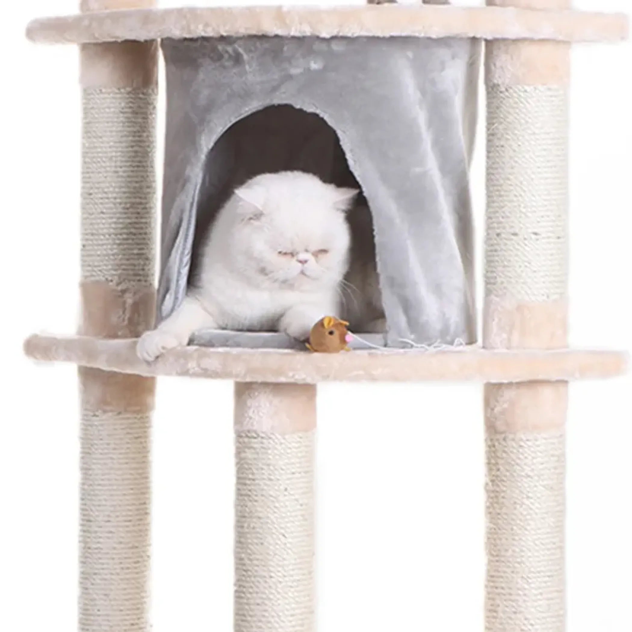This 64" Cat Tree in Blanched Almond is an ideal cat tree that will satisfy your pet cat's personal space needs.