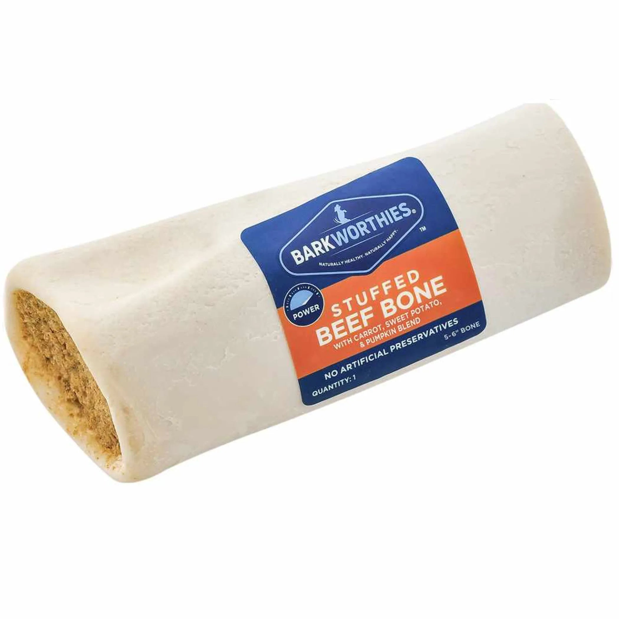 Barkworthies new 5-6" Stuffed Shin Bones are durable, long-lasting, and are now made with a variety of new and innovative fillings! These beef shin bones are made from free-range, pasture-raised cattle; and are paired with unique fillings such as superfood blends or natural peanut butter and meaty beef flavorings. Each stuffed shin bone provides dogs with a healthy chew alternative and can be refilled with their favorite snacks as an even longer-lasting chew! Recommended for medium sized dogs.