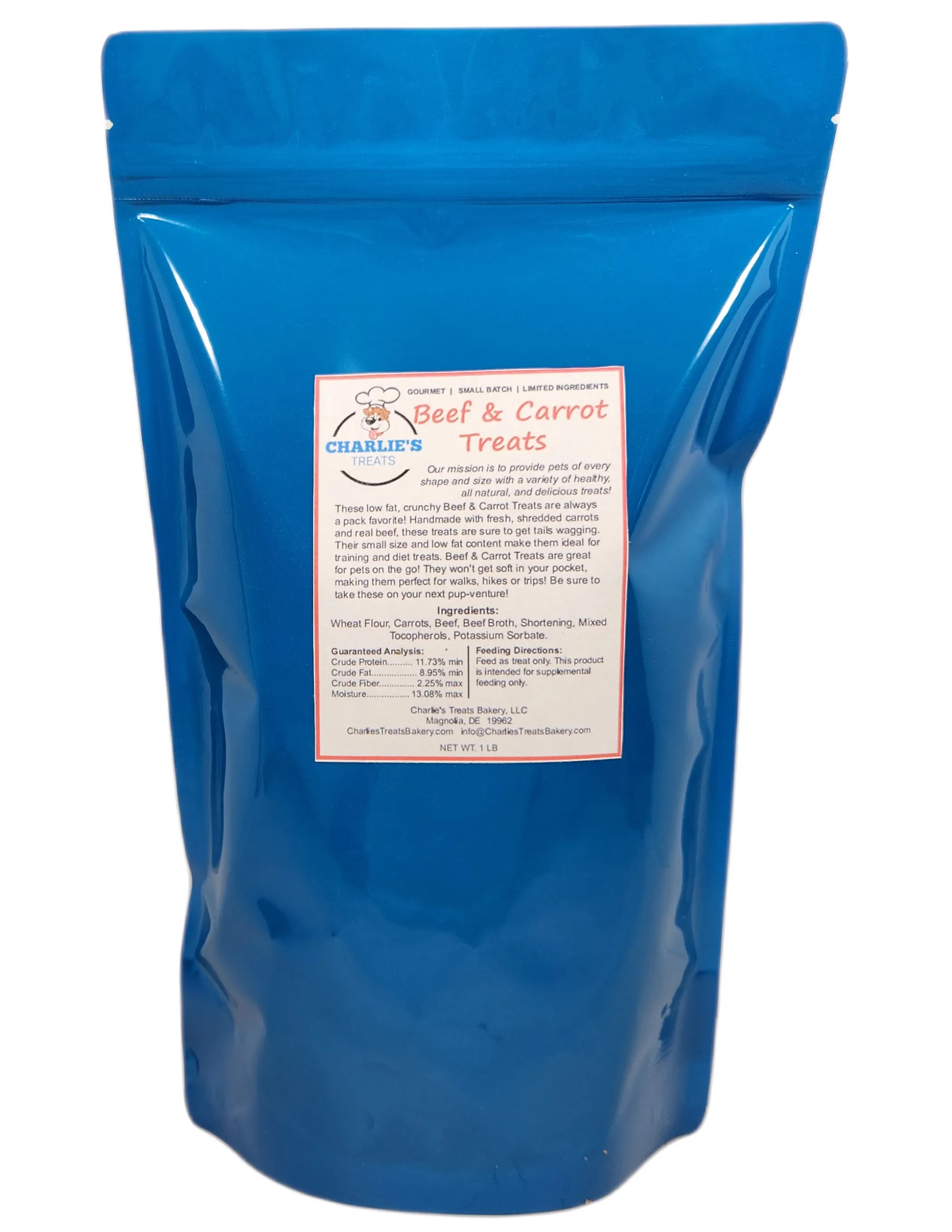 Our Beef & Carrot Treats are made with real beef and fresh shredded carrot. These treats are low-fat, perfect for small or overweight dogs and frequent treating like training.