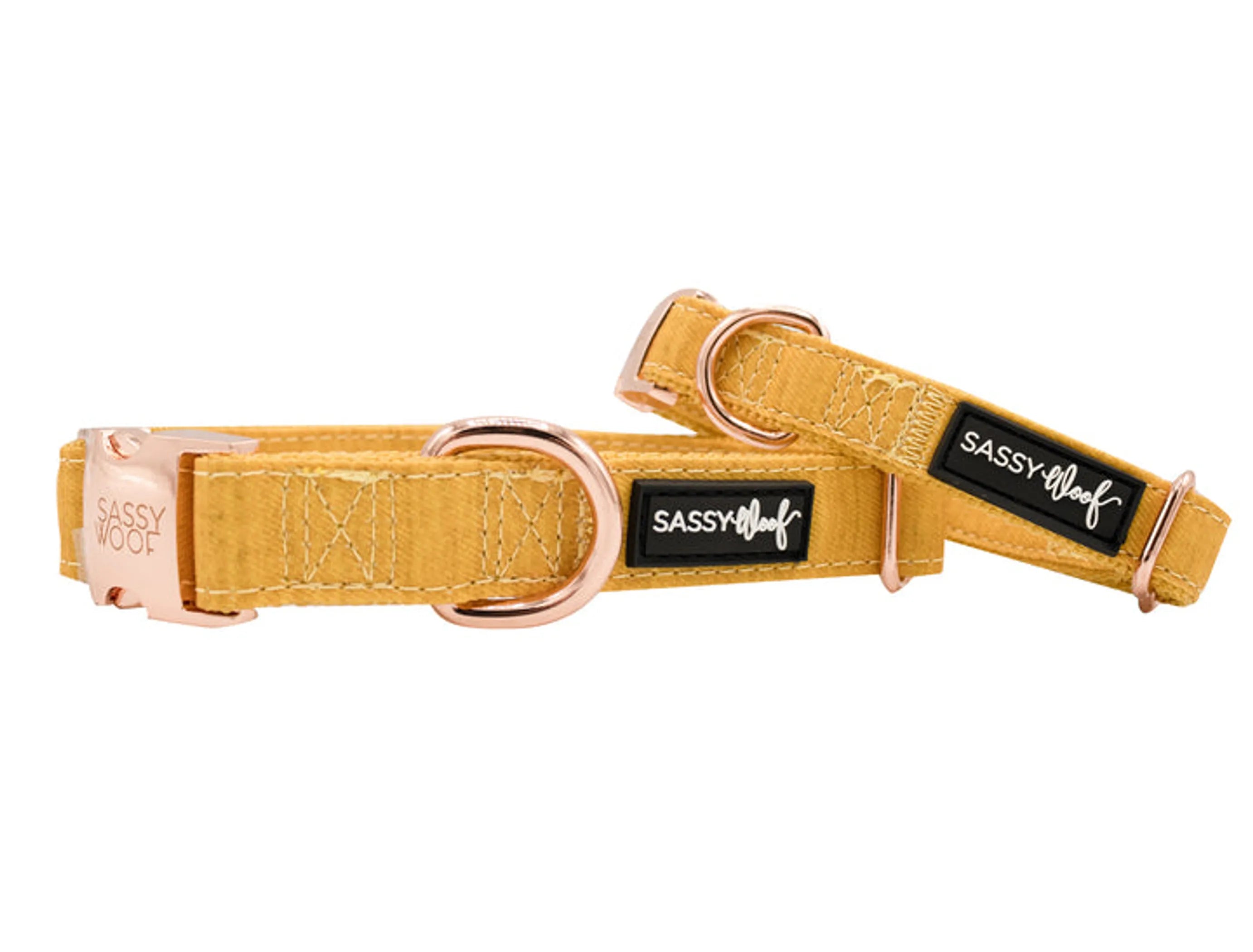 This stunning collar is a staple for every dog's wardrobe. This color will pop on any pup! Walk in style with our beautifully crafted collar with a classy look. Featuring rose gold accents. Fully adjustable.