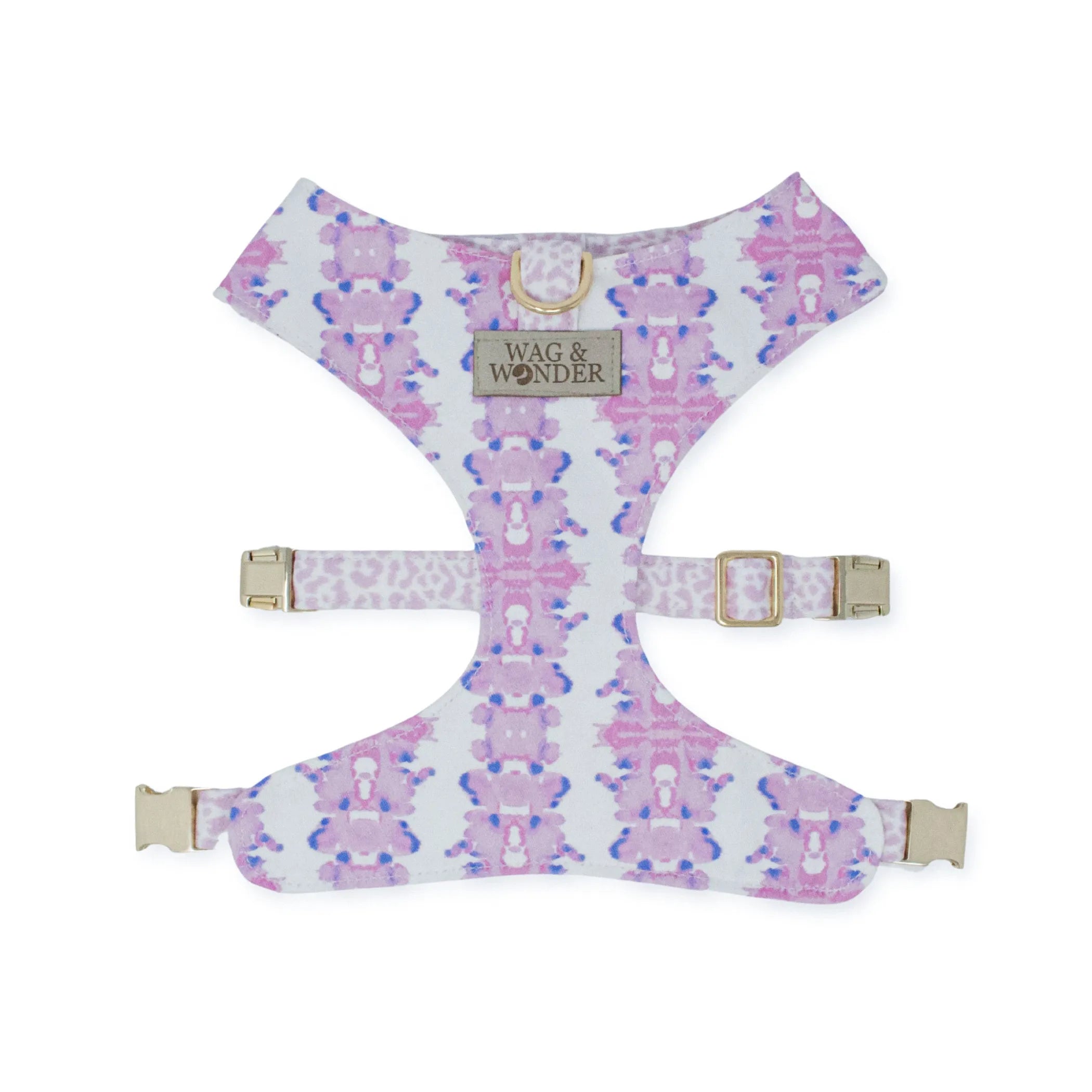 The French Lavender Reversible Dog Harness is part of our collection of prints from the talented Danika Herrick. The Rosette is an elevated take on ikat leopard spots, and the Ink Blot is an artistic take on an ink blot in shades of French lavender and periwinkle. This look is sophisticated and fun all at the same time. What do you see?