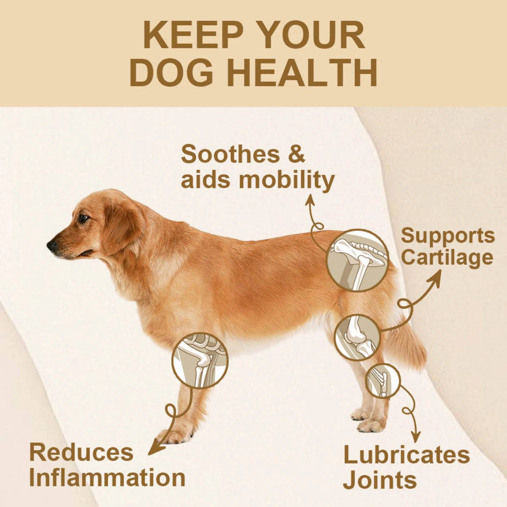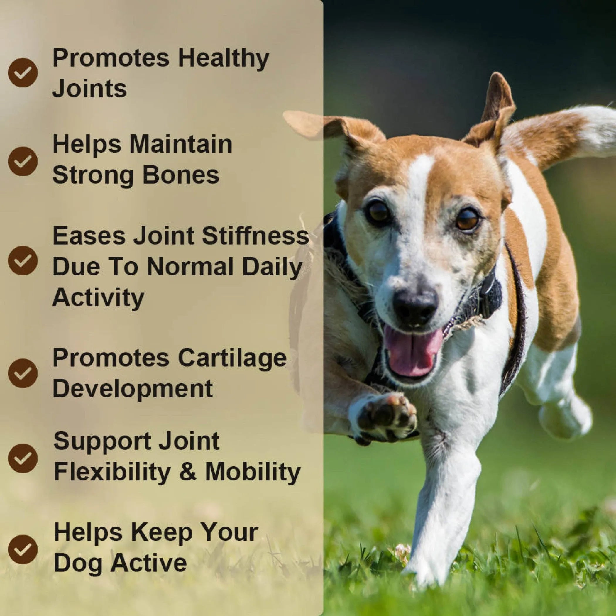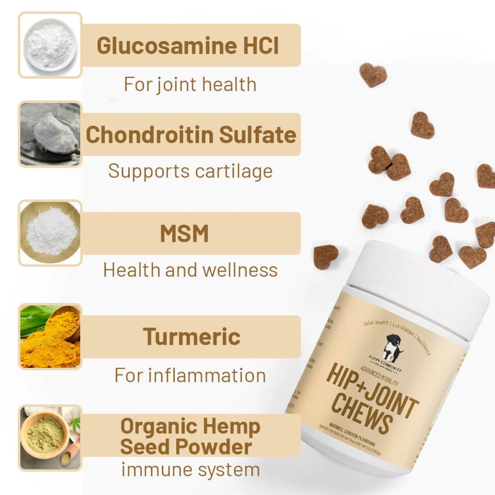 Hip and joint chews for dogs and puppies that contain Glucosamine HCI, Chondroitin Sulfate, MSM, Turmeric, and Organic Hemp Seed Powder can offer several potential benefits for supporting joint health and mobility. These ingredients work synergistically to promote joint function, reduce inflammation, and provide overall comfort for dogs, especially those with joint issues or age-related mobility challenges. Here are some of the potential benefits of these hip and joint chews: