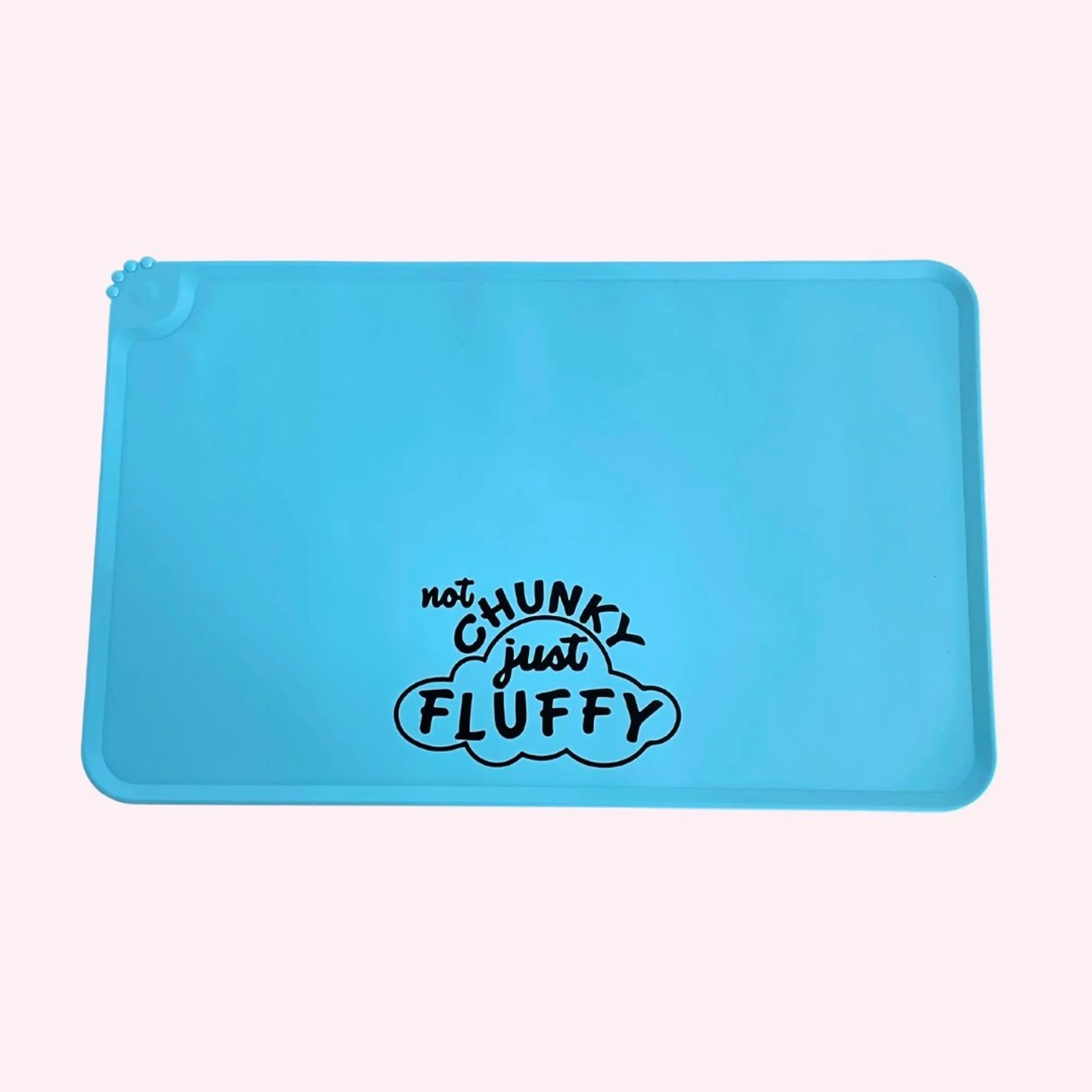"Not Chunky Just Fluffy" Blue Dog Food Mat
