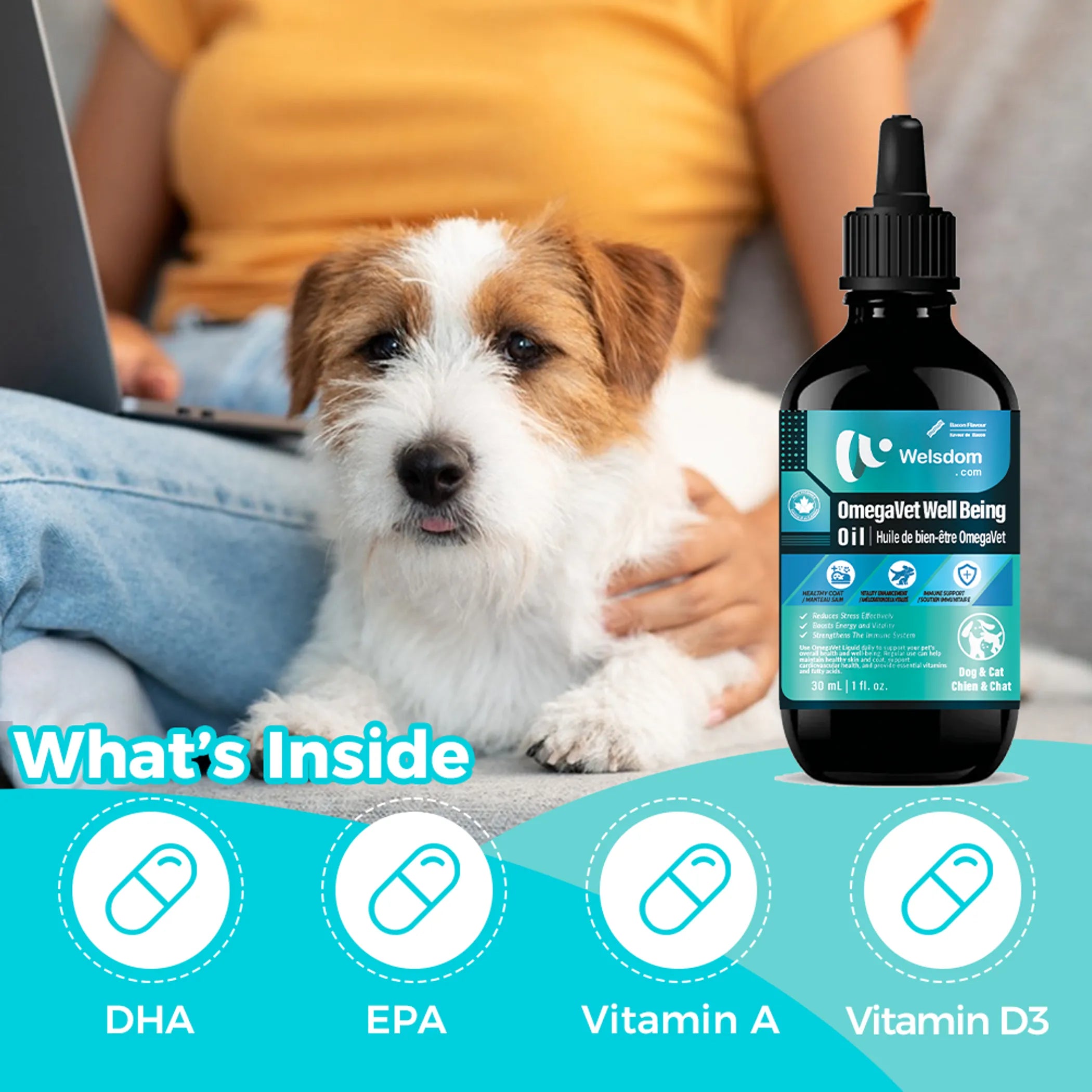 Introducing OmegaVet Liquid, a top-tier veterinary health product formulated as an oral liquid suspension. This supplement provides essential omega-3 fatty acids (DHA and EPA) and fat-soluble vitamins (A, D, and E) derived from high-quality fish oil. Enriched with natural antioxidants and enhanced with a bacon flavor, OmegaVet Liquid ensures excellent palatability while supporting the overall health and well-being of your pets._x000D_ _x000D_ Dosage and Administration:_x000D_ _x000D_ Cats: 0.5 mL daily._x000D_ Small Dogs (up to 10kg): 0.5 mL daily._x000D_ Medium Dogs (10kg to 25kg): 1 mL daily._x000D_ Large Dogs (25kg and over): 2 mL daily._x000D_ _x000D_ Additional Instructions: Each full pipette holds 2 mL of the liquid supplement. For accurate dosing, simply fill the pipette to its maximum capacity (2 mL) and administer the appropriate amount as per your pet's weight and needs._x000D_ _x000D_ High Omega-3 Content_x000D_ Comprehensive Vitamin Support_x000D_ Rich Source of Fish Oil_x000D_ Enhanced with Antioxidants_x000D_ Improved Palatability_x000D_ Versatile Health Benefits