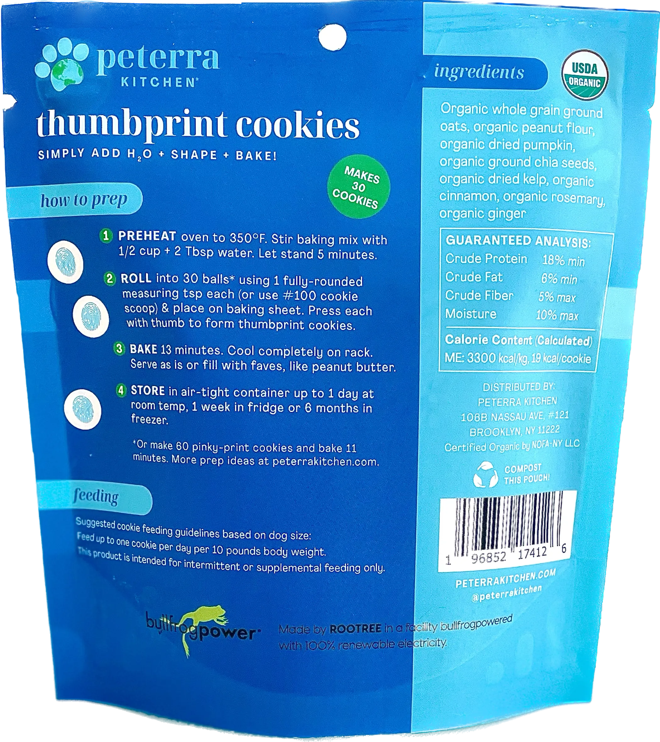 INGREDIENTS: Organic whole grain ground oats, organic peanut flour, organic dried pumpkin, organic ground chia seeds, organic dried kelp, organic cinnamon, organic rosemary, organic ginger
