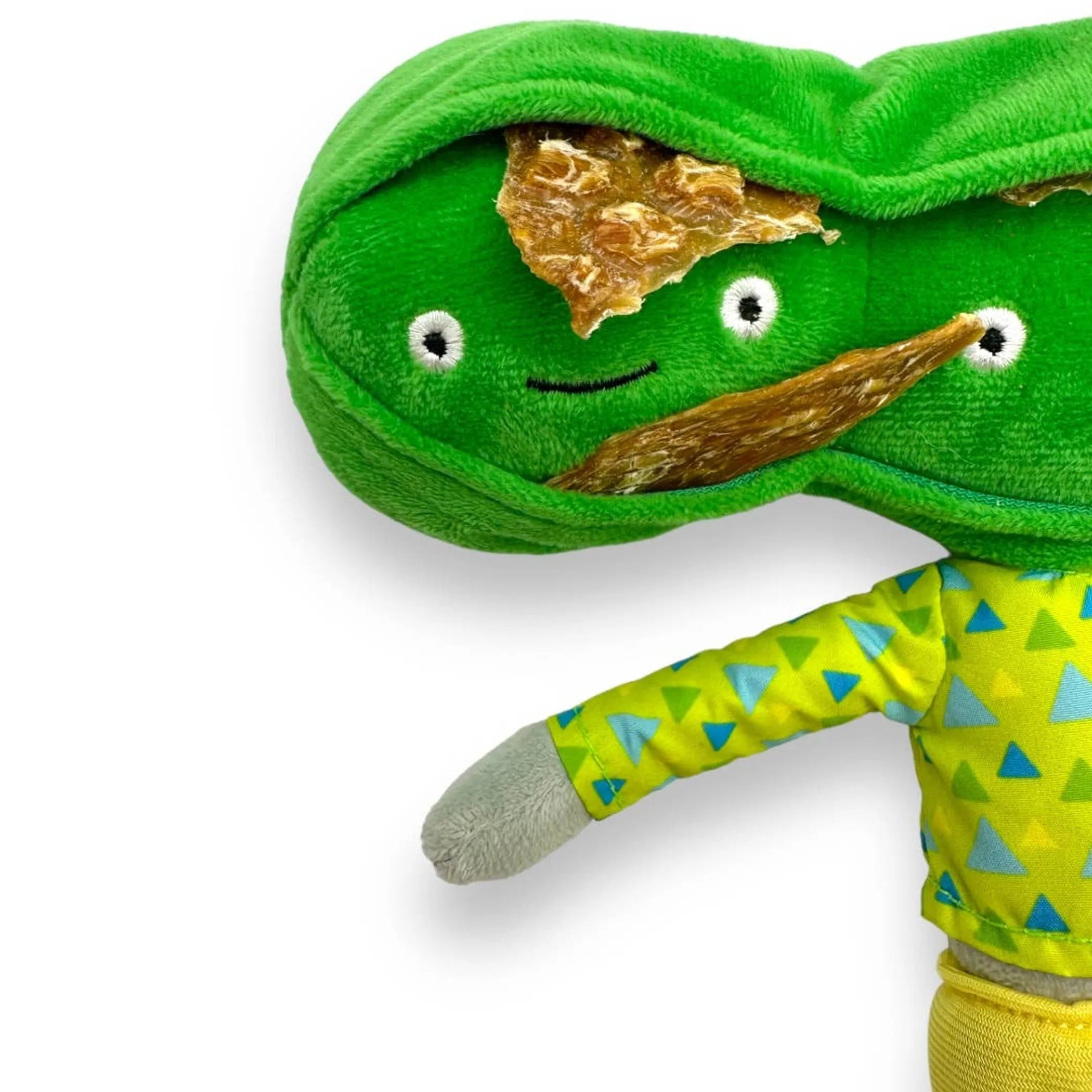 A playful squeaky pea toy hidden in its pods, just waiting to be discovered!