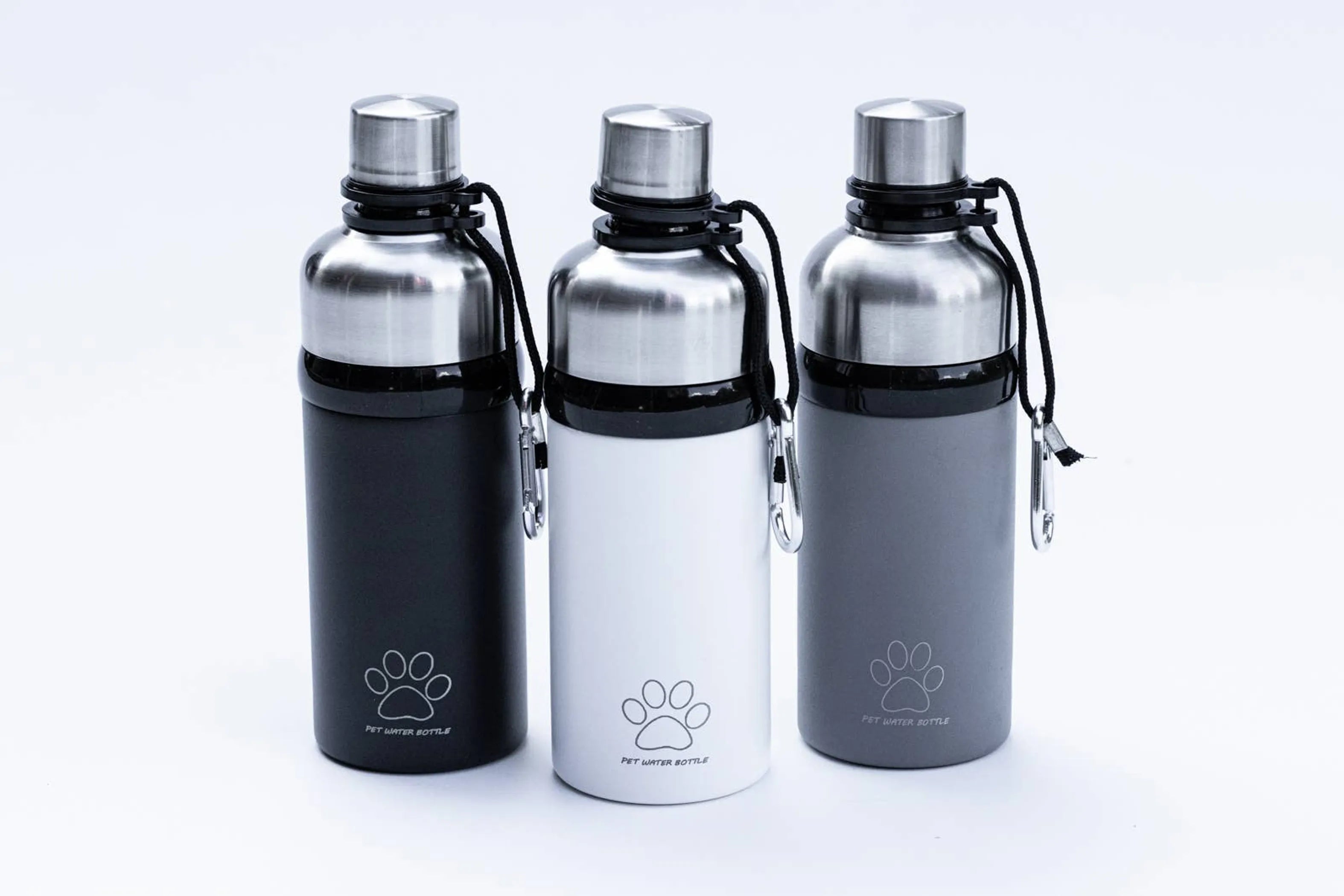 This patented, BPA-free bottle comes in 16 & 24 ounce sizes and in 4 beautiful finishes: Powder Coat White, Powder Coat Grey, Powder Coat Black, and Colorful Paws.