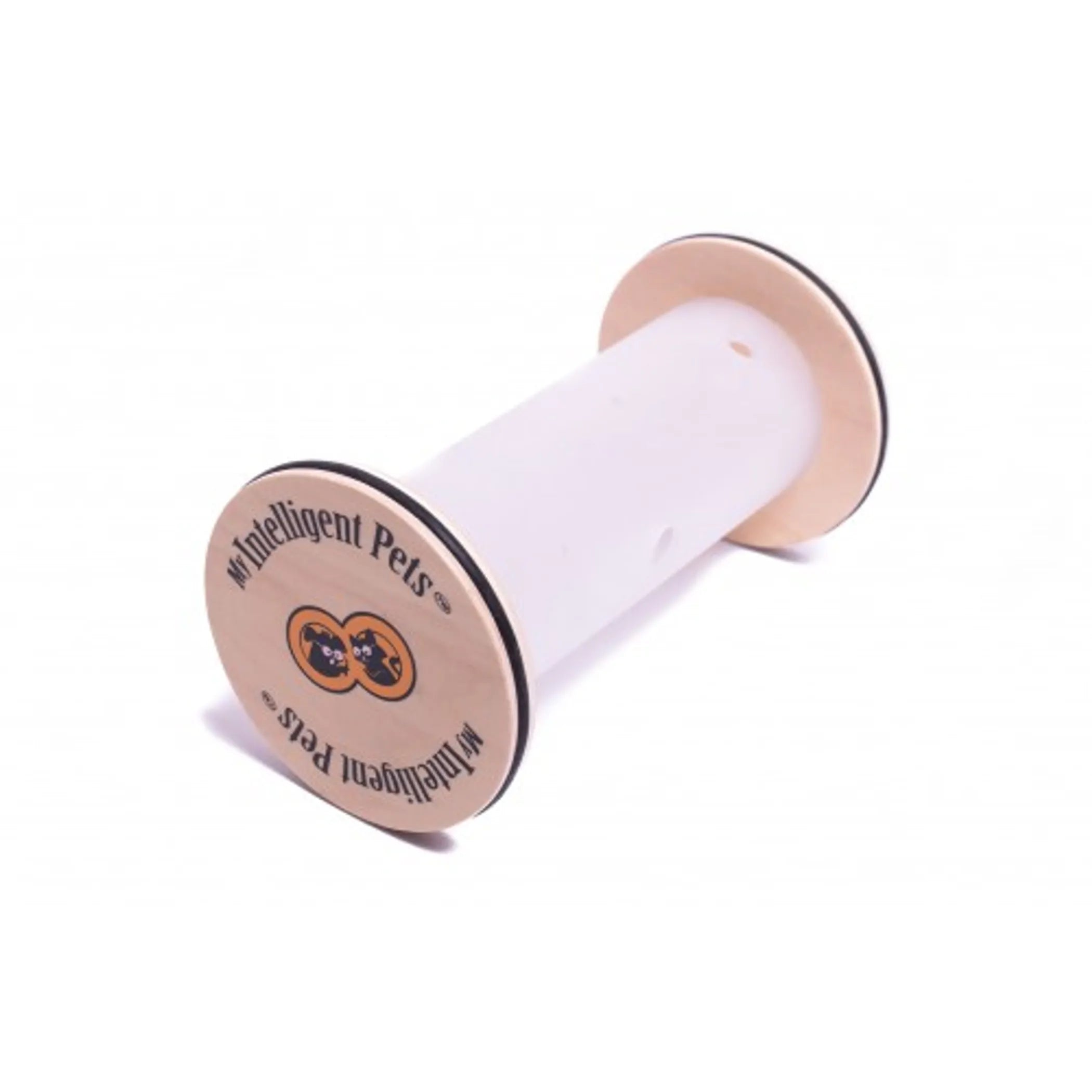 Length: 3.50 Width: 3.50 Height: 7.00 Length: 3.50 Width: 3.50 Height: 7.00 Happy Roll Is relatively easy game with 1 paw level of difficulty on our scale. It contains of a transparent cylinder where you insert your dog's favorite treats. The challenge is to make the treats fall out through 3 openings in the cylinder by rolling it on flat surface. This game is designed for small and medium breeds. According to dog's behaviorists 10 minutes of mental stimulation with employment of interactive game equivalents to 1 hour of physical exercise. This is especially important for the dogs living in large cities where long walks are difficult and impossible, senior dogs with ailments that do not allow them for prolong outings and those living in cold climates where going outside can put animal's health at risk. Additional information: Dimensions: 9"x5"x5" Weight: 1lb All our games and puzzles are made from certified wood covered with water-based varnish that is not harmful to humans and animals. Please keep the game dry and free of water exposure, as the wooden pieces may swell otherwise. Use only dry treats for playing with our games Keep out of reach of small children since removable parts can be a choking hazard to them.