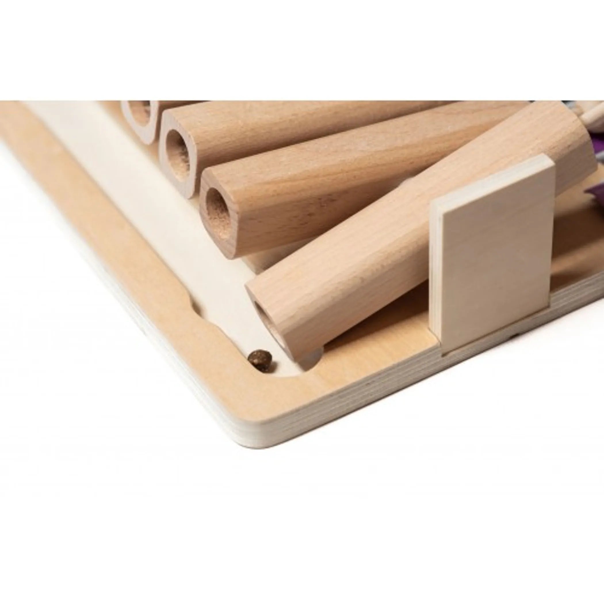Length: 12.50 Width: 11.30 Height: 3.40 Pet's Piano presents your pets a new challenge. Unlike in the flat board puzzles where the dog or cat moves tiles with its nose or paw to get the reward, in this new game it is required to work vertically and horizontally to get the treats. The game trains concentration and dexterity as well as boosting its natural instincts of curiosity, a drive to play and sense of smell. Eight wooden pipes in which the treats can be hidden, when pushed down will drop off their content as a reward to the pet. In the same moment on the xylophone the sound will be generated. The pet is "playing" its song :) The puzzle can be varied in regards of the difficulty level. To make it more difficult place pegs in the row below the pipes and the player needs to remove them first so the tubes can be pushed down. How to play: Step 1: Place a number of treats in pipes Step 2: Encourage your pet to push tubes down Step 3: Praise your furry friend each time it manages to get the treat Step 4: Place treats in the row below tubes and cover them with respective pegs. Encourage your pet to remove the pegs and so get the rewards.