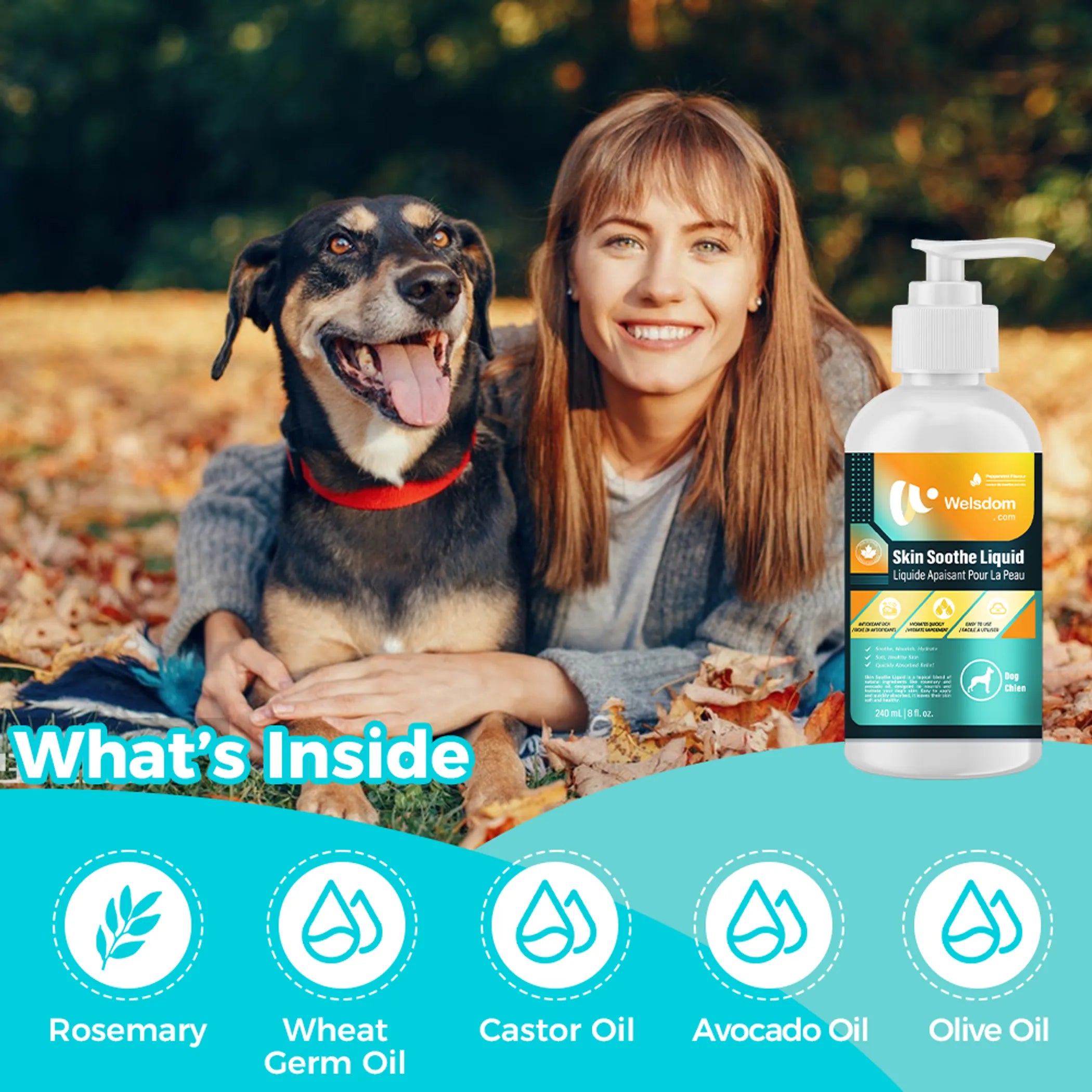 Introducing Skin Soothe Liquid for Dogs, a premium topical formulation designed to soothe and nourish your dog's skin. This unique blend of natural active ingredients, including rosemary, wheat germ oil, castor oil, avocado oil, and olive oil, provides exceptional moisturizing, antioxidant, and skin-nourishing benefits. Formulated as a liquid, Skin Soothe is easy to apply and quickly absorbed, leaving your dog's skin soft, hydrated, and healthy._x000D_ _x000D_ Natural Ingredients_x000D_ Moisturizing and Hydrating_x000D_ Antioxidant Protection_x000D_ Soothes Irritation_x000D_ Easy Application_x000D_ Promotes Healthy Skin
